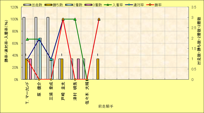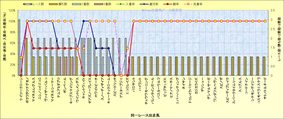 ライバル(相性)解析 同一レースに下記馬が出走した場合の成績とその馬に先着する先着率 |