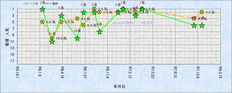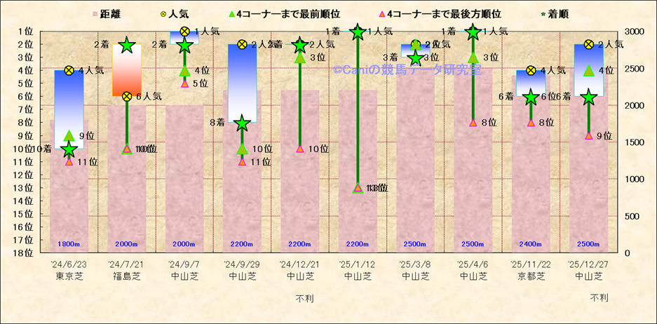 脚質解析 近20レースの4コーナーでの位置取りと上がり順位(頭数補正後) |