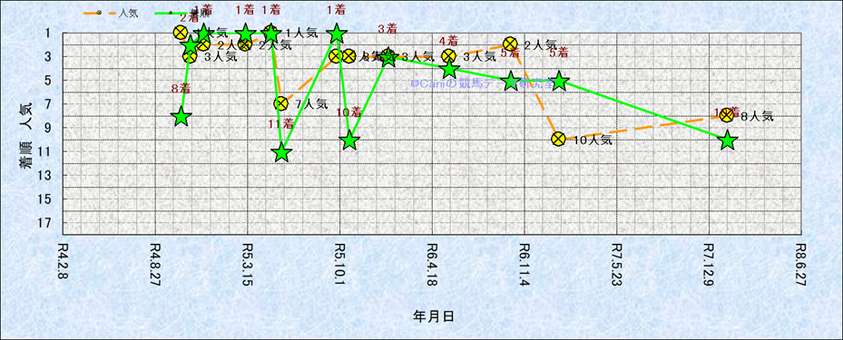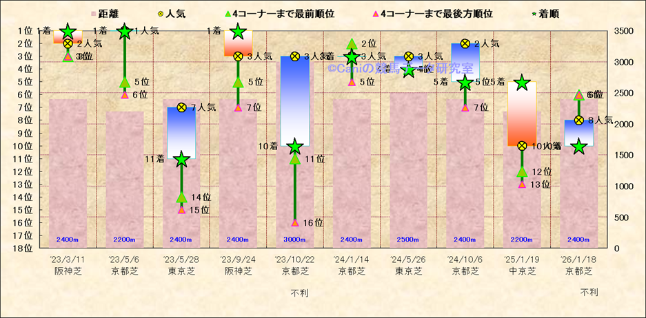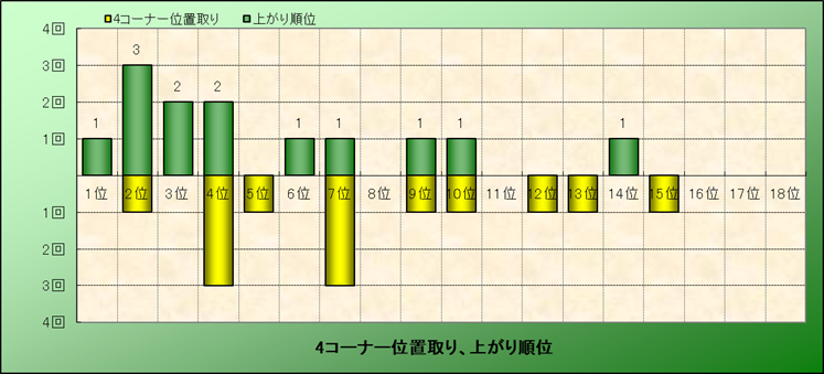 脚質解析 近20レースの4コーナーでの位置取りと上がり順位(頭数補正後) |