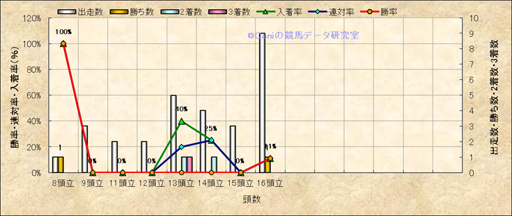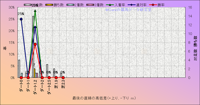 コース、最後の直線の高低差別成績(平地) |