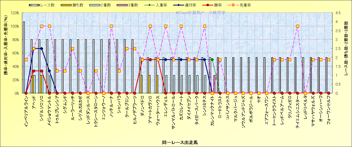 ライバル(相性)解析 同一レースに下記馬が出走した場合の成績とその馬に先着する先着率 |