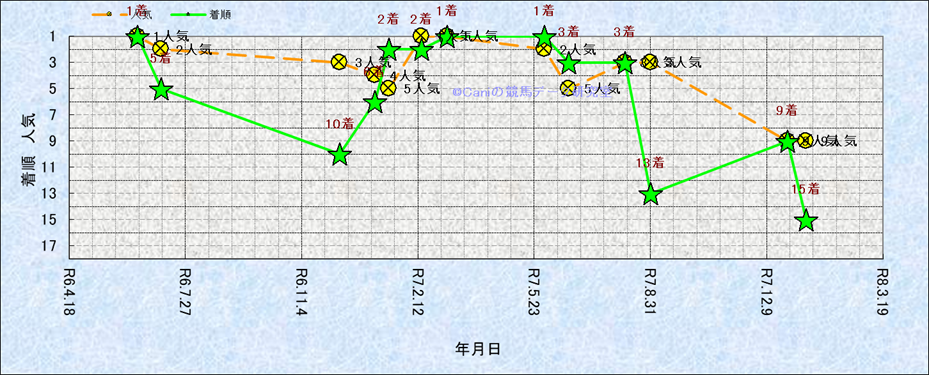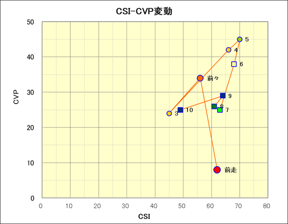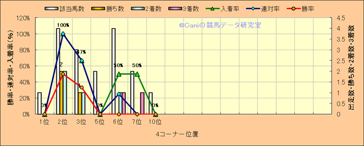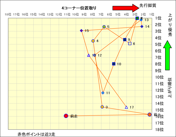 近走における4コーナーでの位置取りと上がり順位(頭数補正後) |
