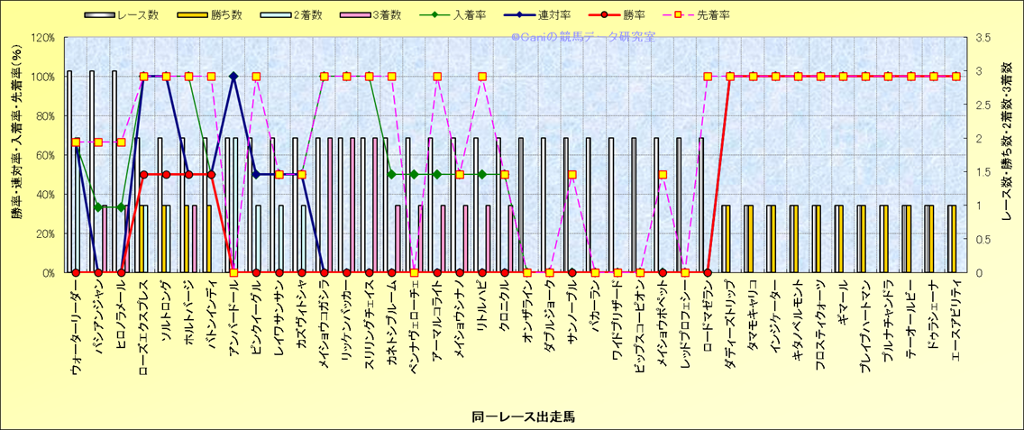 ライバル(相性)解析 同一レースに下記馬が出走した場合の成績とその馬に先着する先着率 |