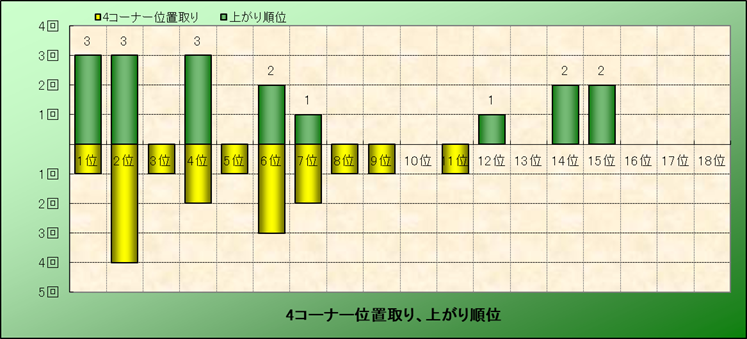 脚質解析 近20レースの4コーナーでの位置取りと上がり順位(頭数補正後) |