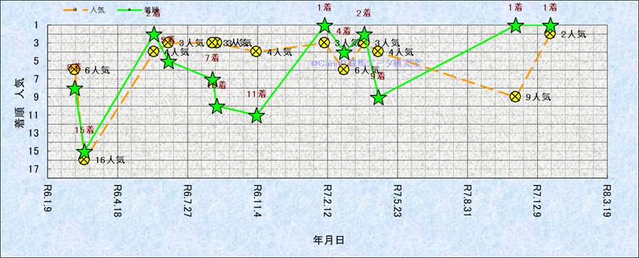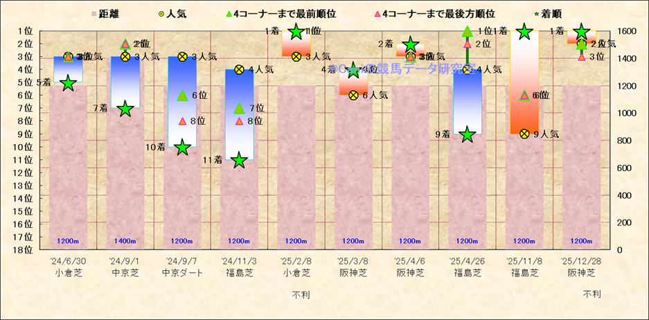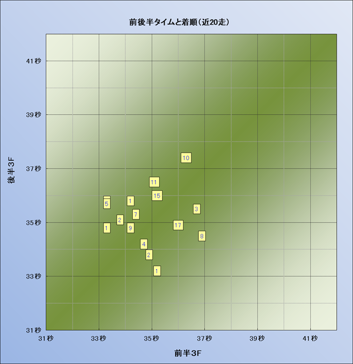 脚質解析 近20レースの4コーナーでの位置取りと上がり順位(頭数補正後) |