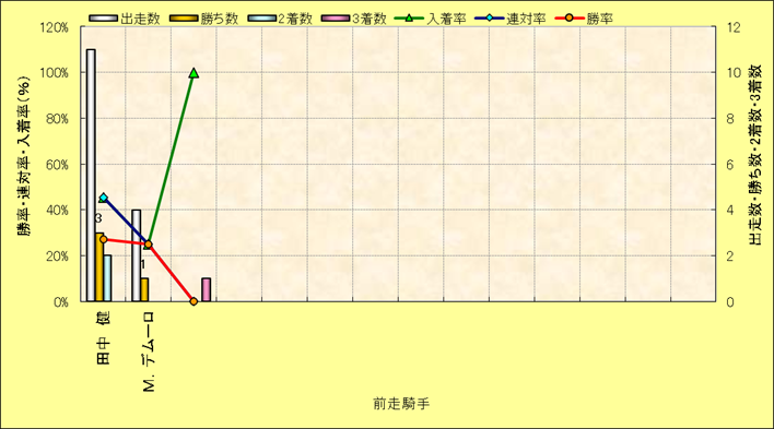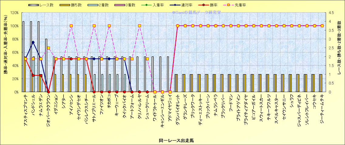 ライバル(相性)解析 同一レースに下記馬が出走した場合の成績とその馬に先着する先着率 |