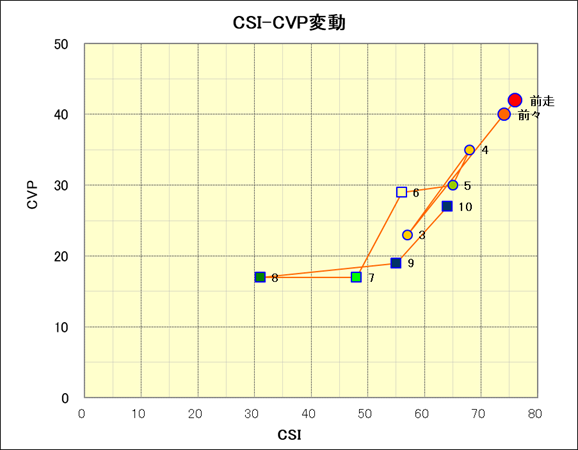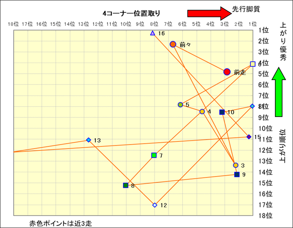 近走における4コーナーでの位置取りと上がり順位(頭数補正後) |