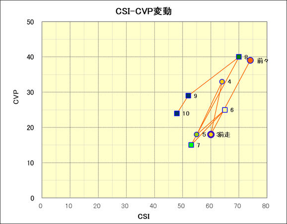 走行距離とCSI値の相関 |