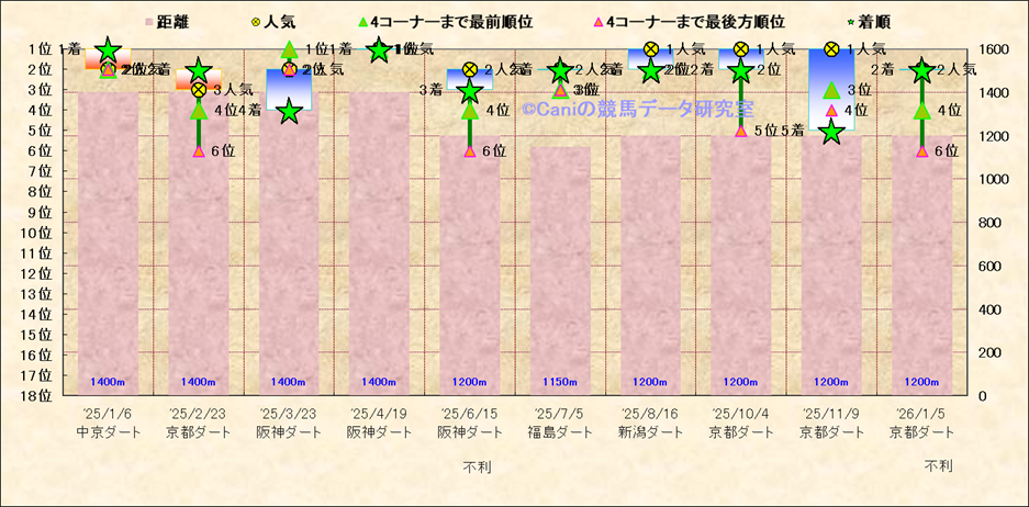 近10走 人気−着順-位置取りの推移 |