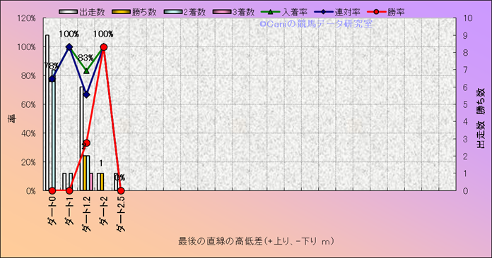 コース、最後の直線の高低差別成績(平地) |