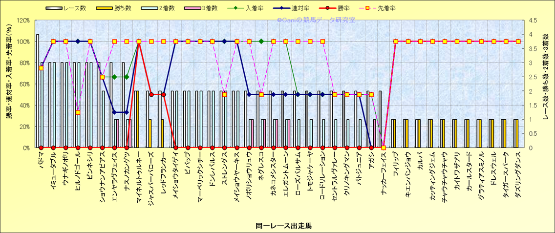 ライバル(相性)解析 同一レースに下記馬が出走した場合の成績とその馬に先着する先着率 |