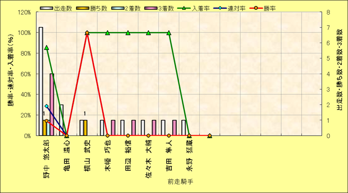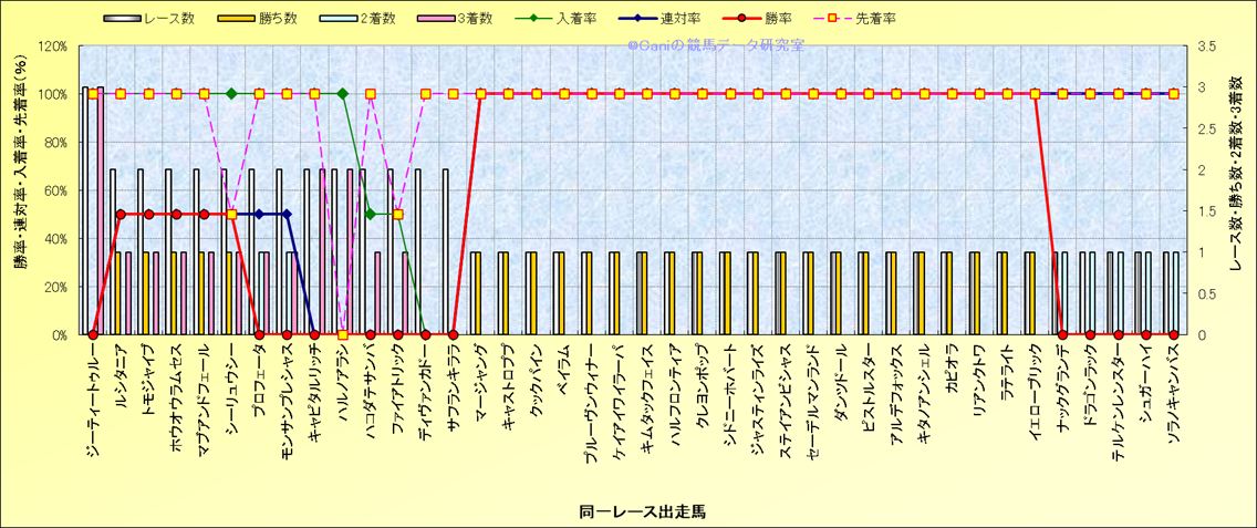 ライバル(相性)解析 同一レースに下記馬が出走した場合の成績とその馬に先着する先着率 |