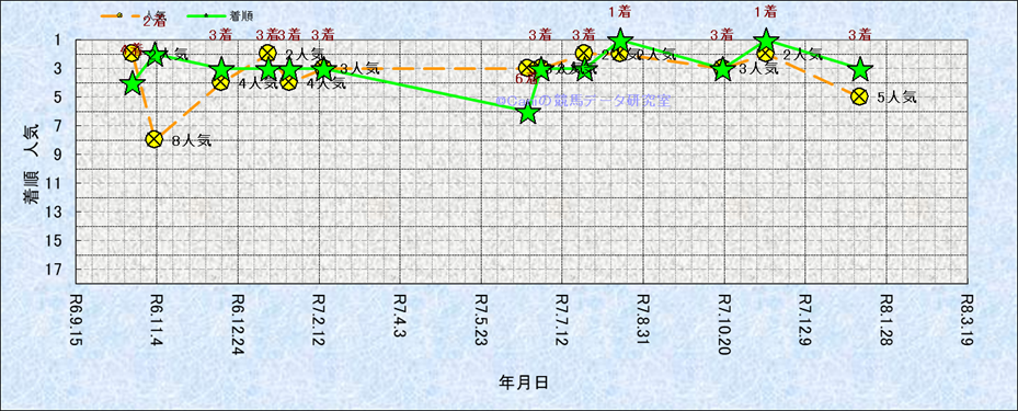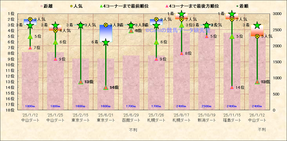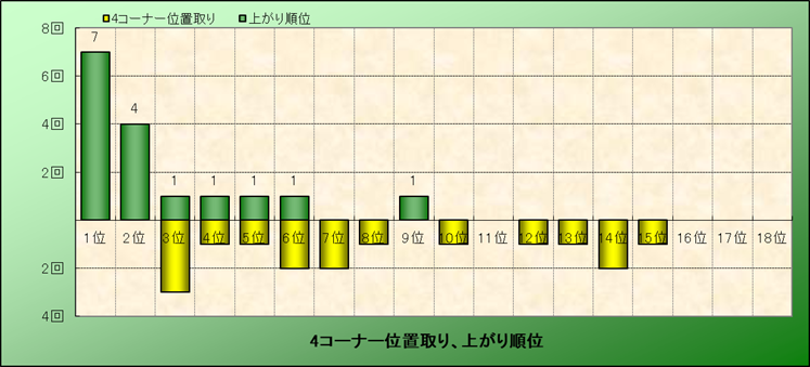 脚質解析 近20レースの4コーナーでの位置取りと上がり順位(頭数補正後) |