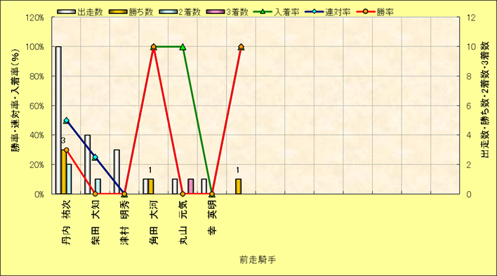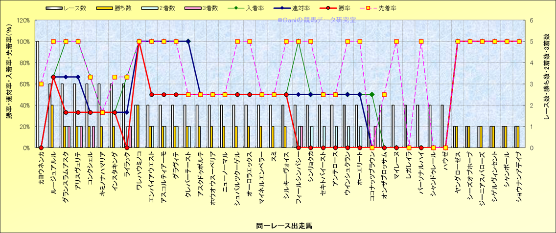ライバル(相性)解析 同一レースに下記馬が出走した場合の成績とその馬に先着する先着率 |