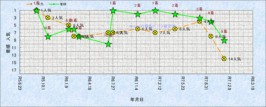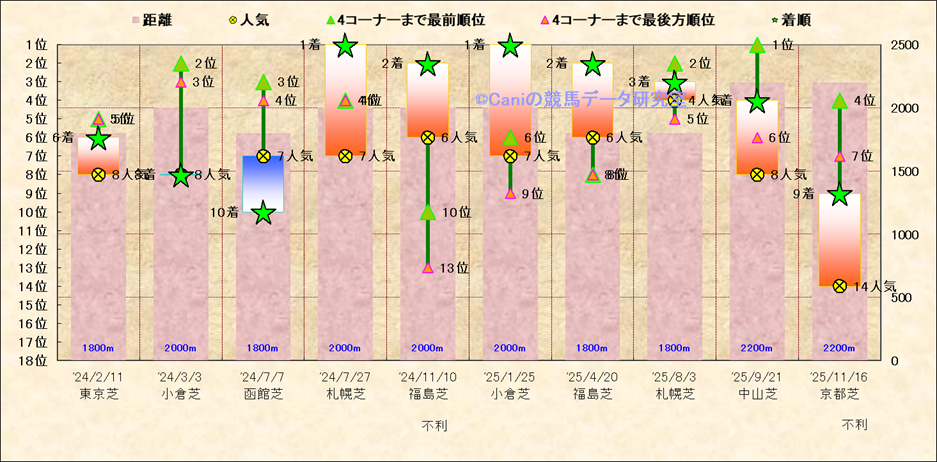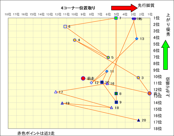 脚質解析 近20レースの4コーナーでの位置取りと上がり順位(頭数補正後) |