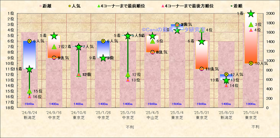 近10走 人気−着順-位置取りの推移 |