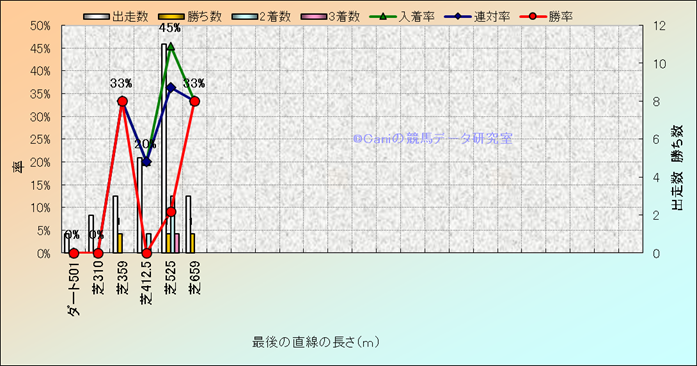 コース、最後の直線の長さ別成績(平地) |