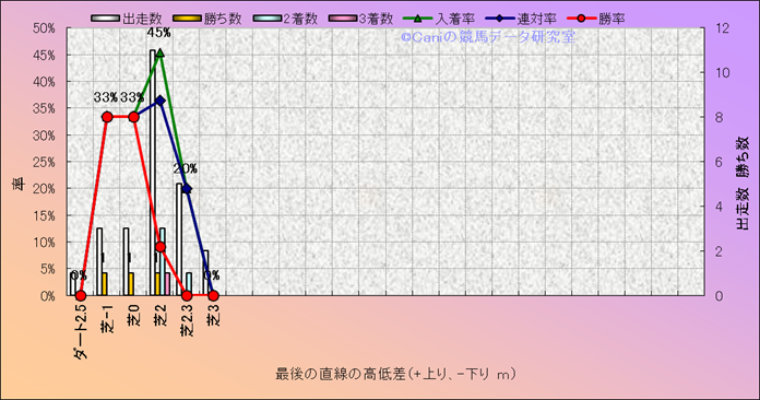 コース、最後の直線の高低差別成績(平地) |