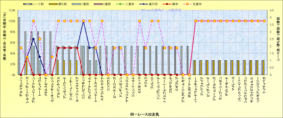 ライバル(相性)解析 同一レースに下記馬が出走した場合の成績とその馬に先着する先着率 |