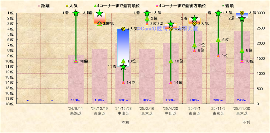 近10走 人気−着順-位置取りの推移 |