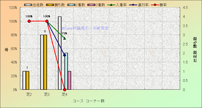 コース、コーナー数別成績(平地) |
