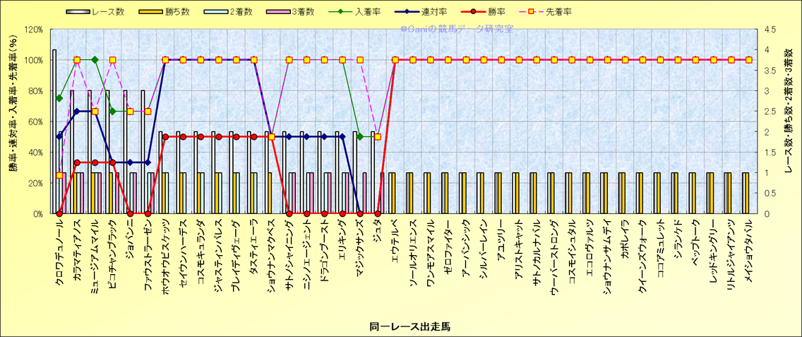 ライバル(相性)解析 同一レースに下記馬が出走した場合の成績とその馬に先着する先着率 |