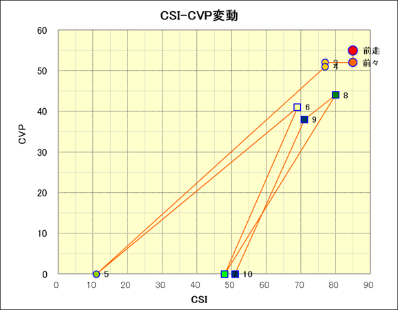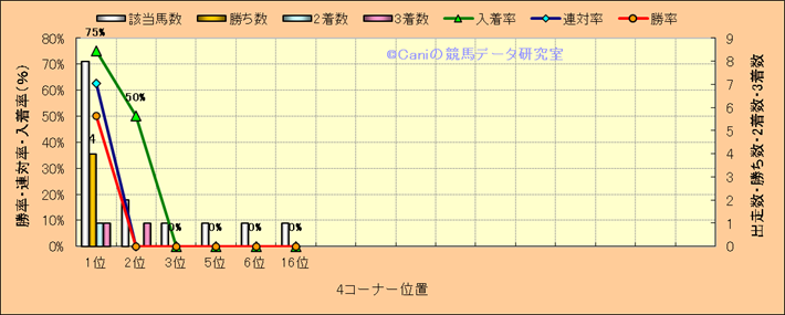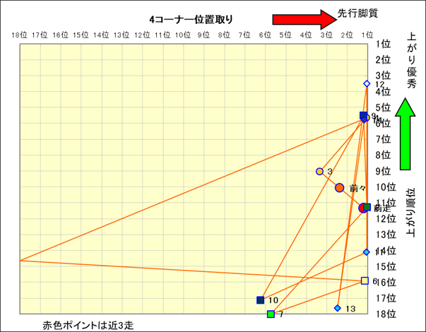 近走における4コーナーでの位置取りと上がり順位(頭数補正後) |