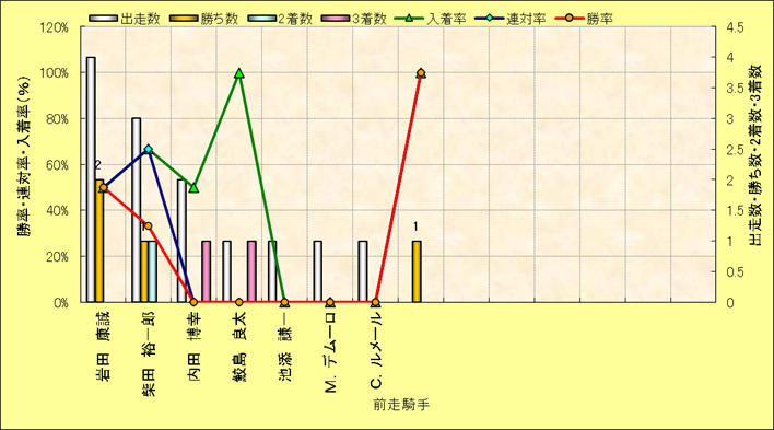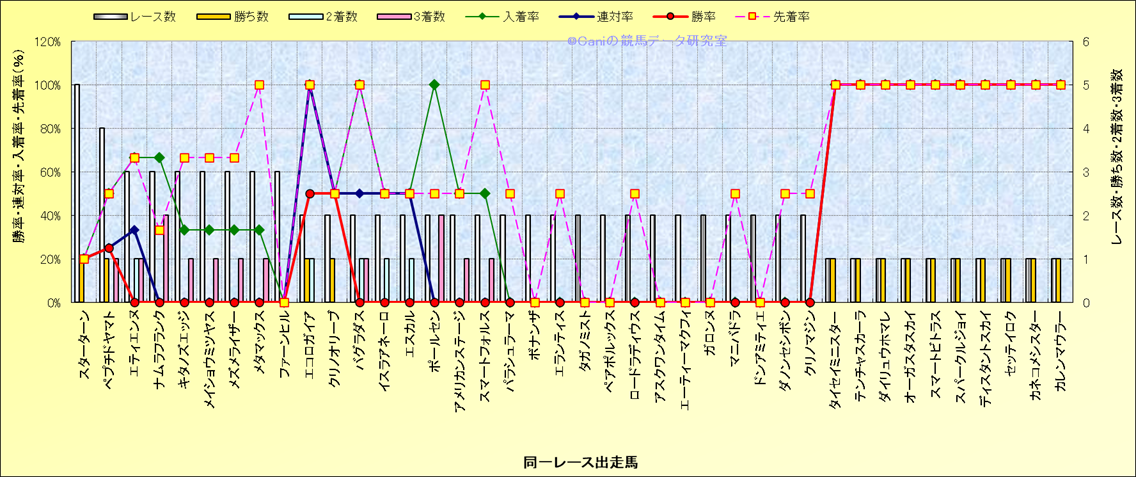 ライバル(相性)解析 同一レースに下記馬が出走した場合の成績とその馬に先着する先着率 |