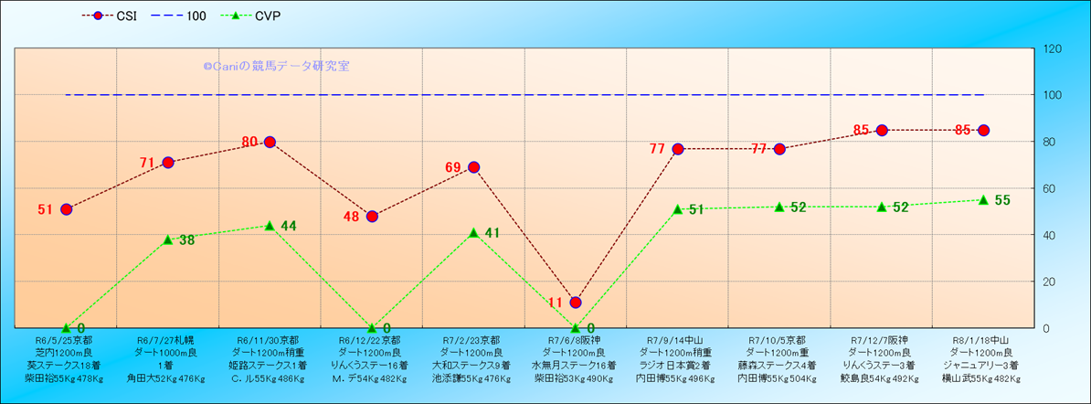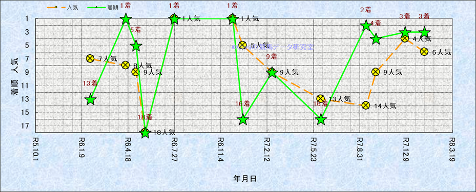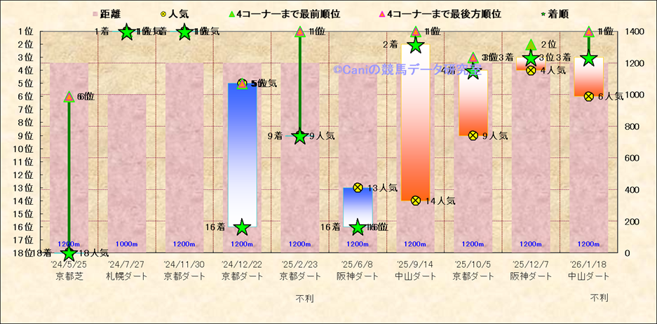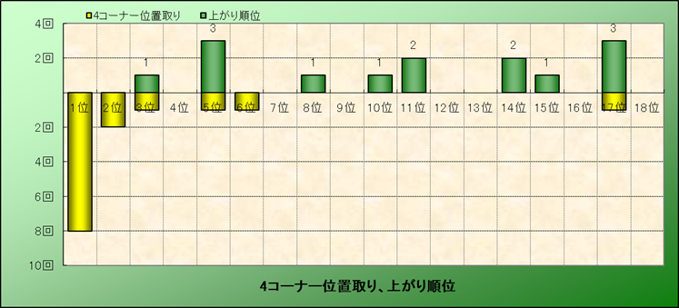 脚質解析 近20レースの4コーナーでの位置取りと上がり順位(頭数補正後) |