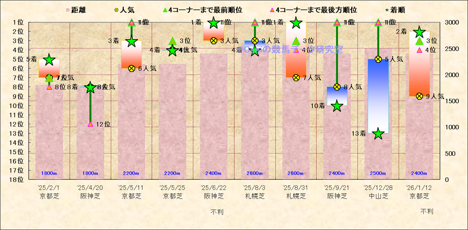 近10走 人気−着順-位置取りの推移 |