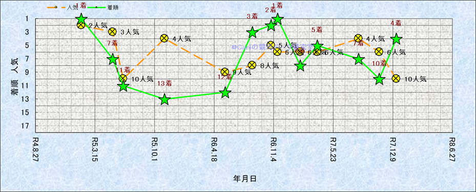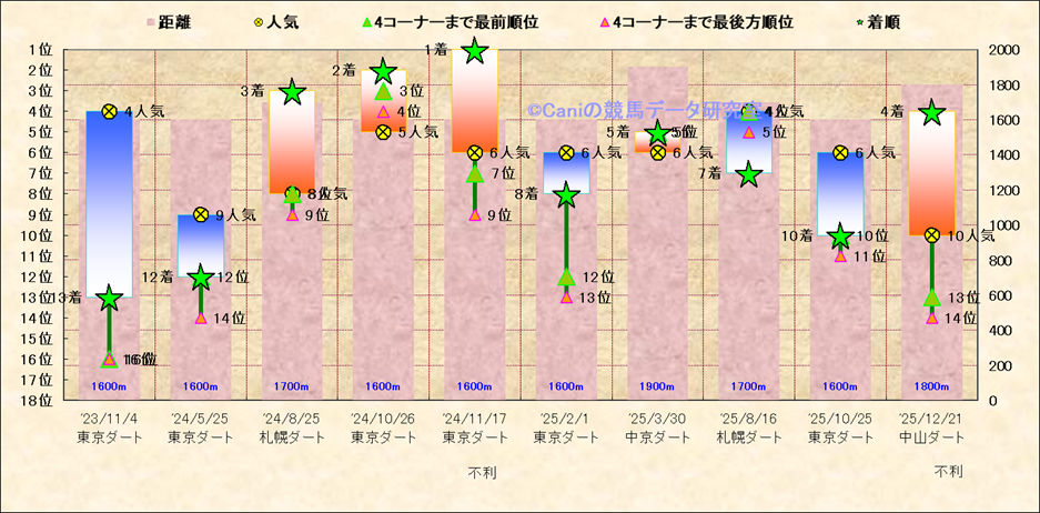 脚質解析 近20レースの4コーナーでの位置取りと上がり順位(頭数補正後) |