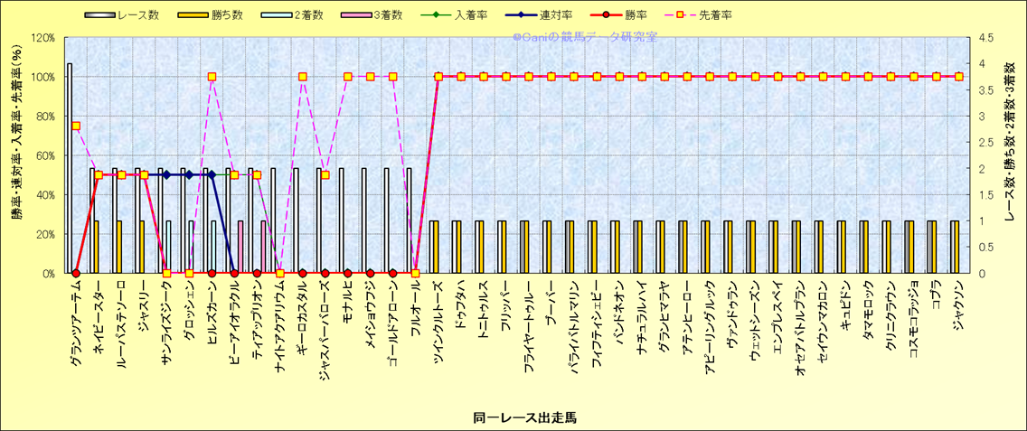 ライバル(相性)解析 同一レースに下記馬が出走した場合の成績とその馬に先着する先着率 |