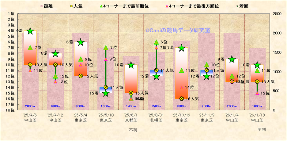 近10走 人気−着順-位置取りの推移 |