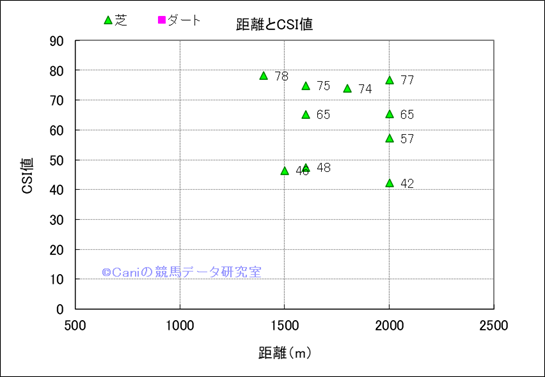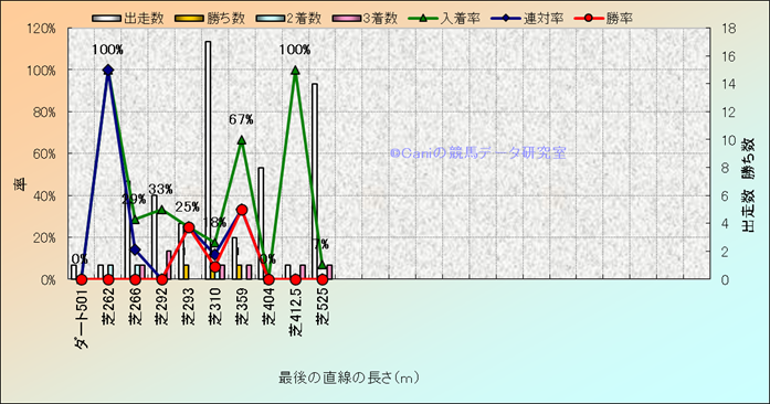 コース、最後の直線の長さ別成績(平地) |