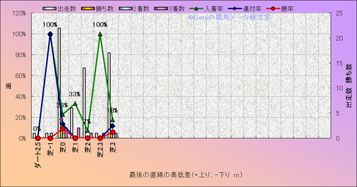 コース、最後の直線の高低差別成績(平地) |