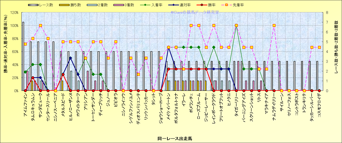 ライバル(相性)解析 同一レースに下記馬が出走した場合の成績とその馬に先着する先着率 |