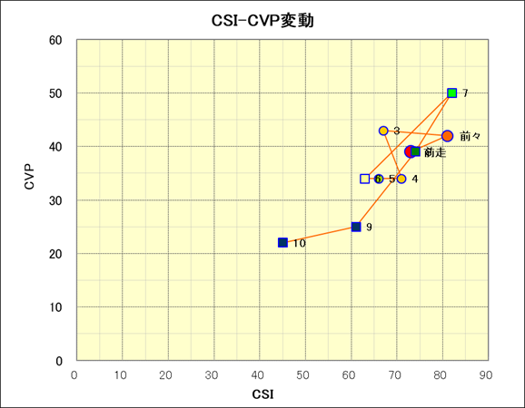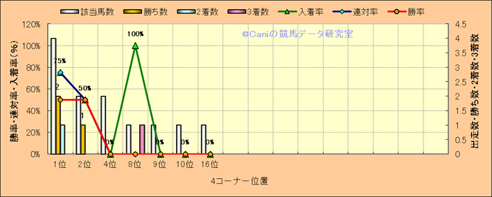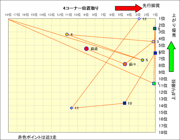 近走における4コーナーでの位置取りと上がり順位(頭数補正後) |