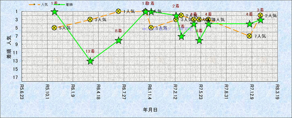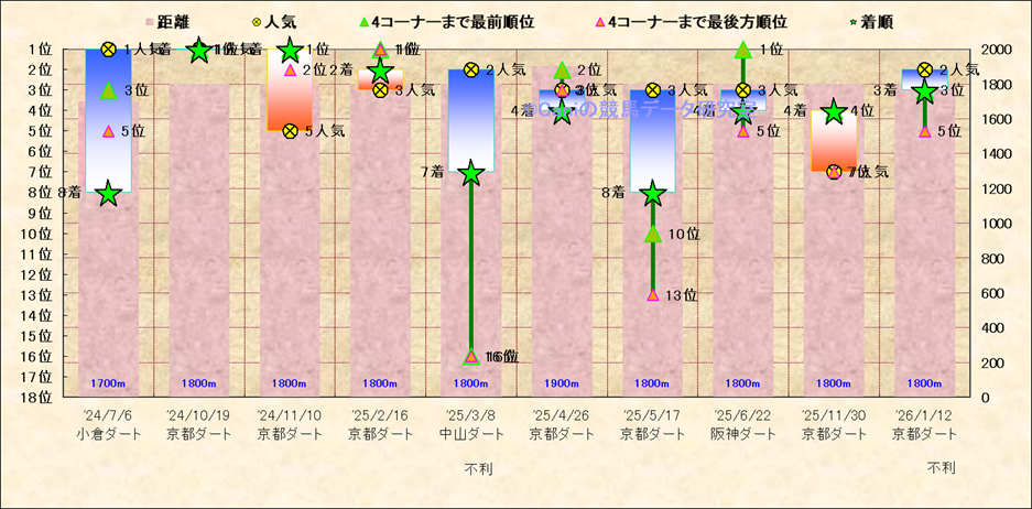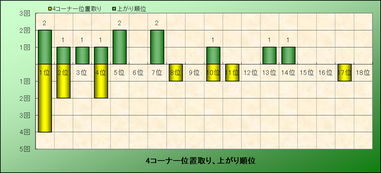 脚質解析 近20レースの4コーナーでの位置取りと上がり順位(頭数補正後) |