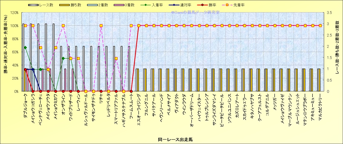 ライバル(相性)解析 同一レースに下記馬が出走した場合の成績とその馬に先着する先着率 |