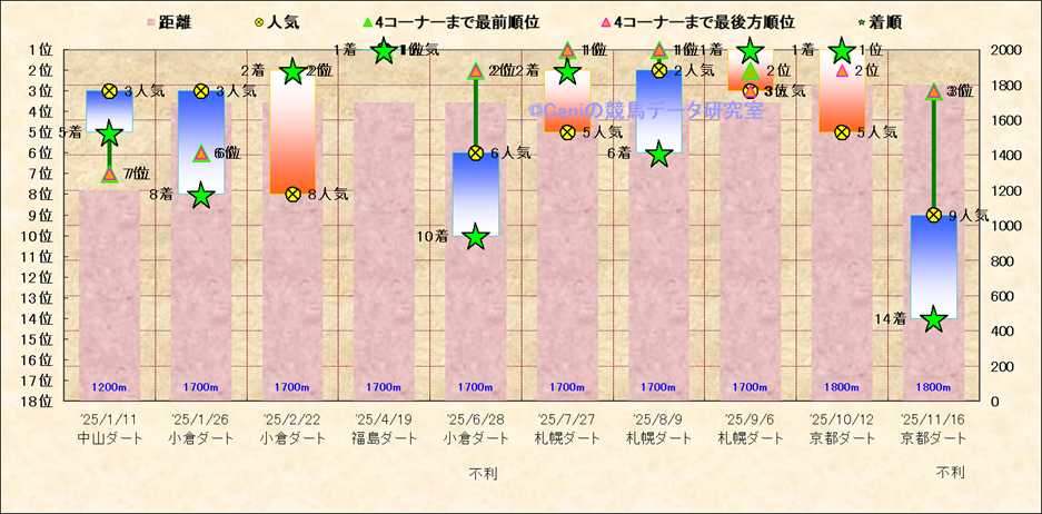 近10走 人気−着順-位置取りの推移 |