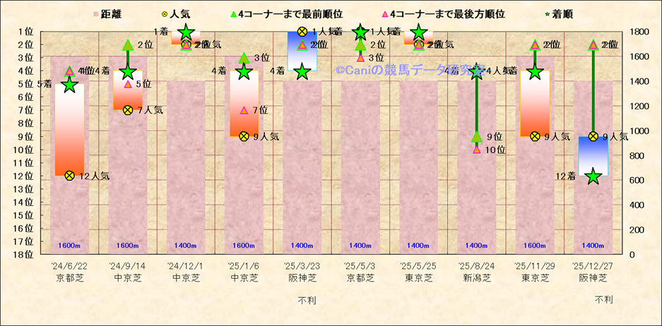 近10走 人気−着順-位置取りの推移 |
