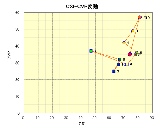 走行距離とCSI値の相関 |