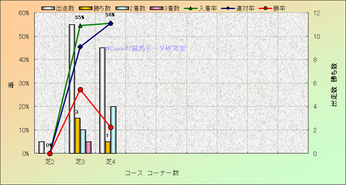 コース、コーナー数別成績(平地) |
