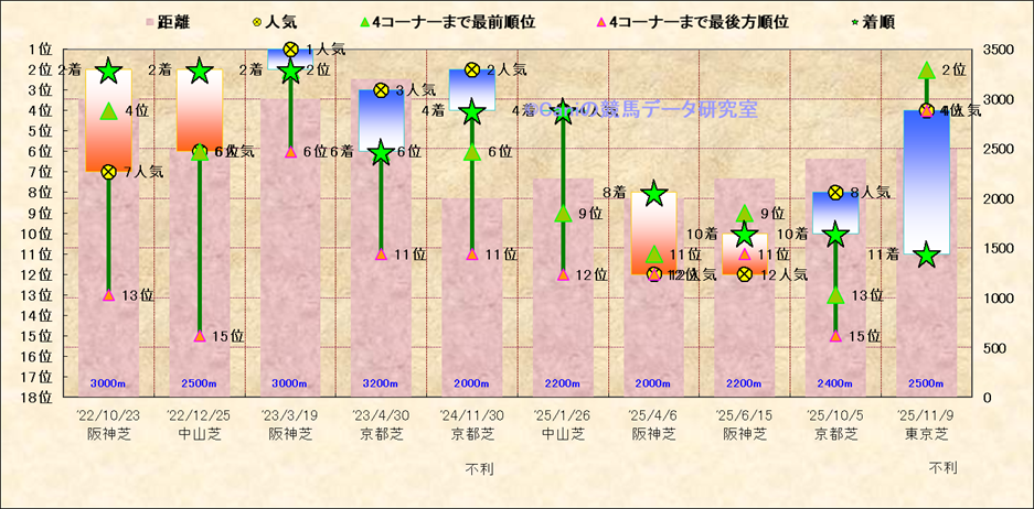近10走 人気−着順-位置取りの推移 |