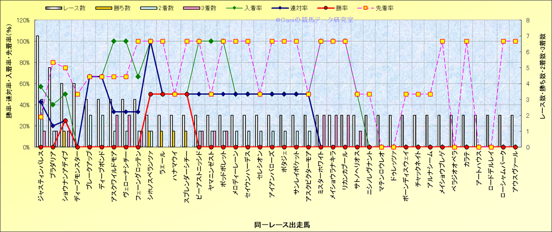 ライバル(相性)解析 同一レースに下記馬が出走した場合の成績とその馬に先着する先着率 |