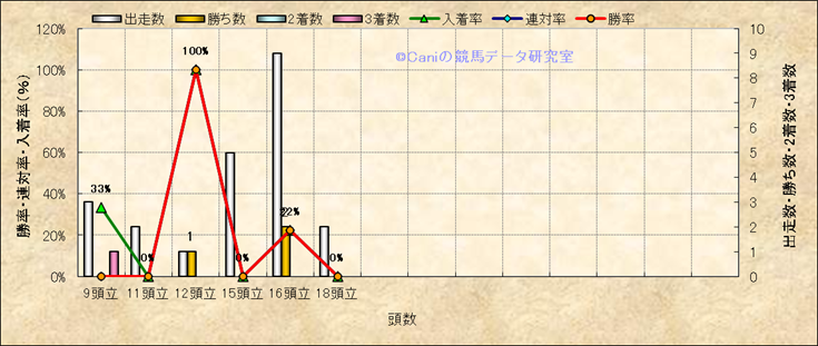 コース、最後の直線の高低差別成績(平地) |
