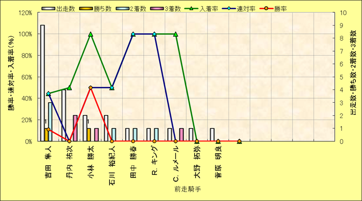 ライバル(相性)解析 同一レースに下記馬が出走した場合の成績とその馬に先着する先着率 |