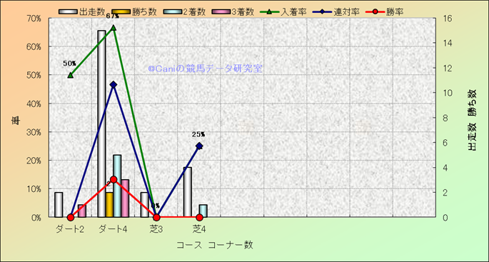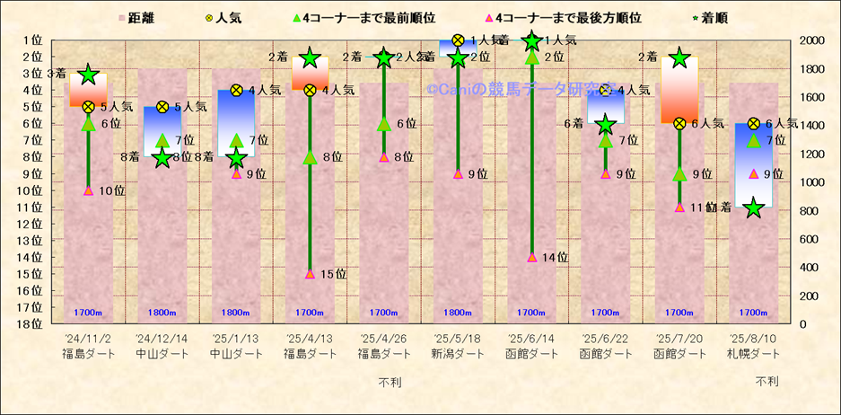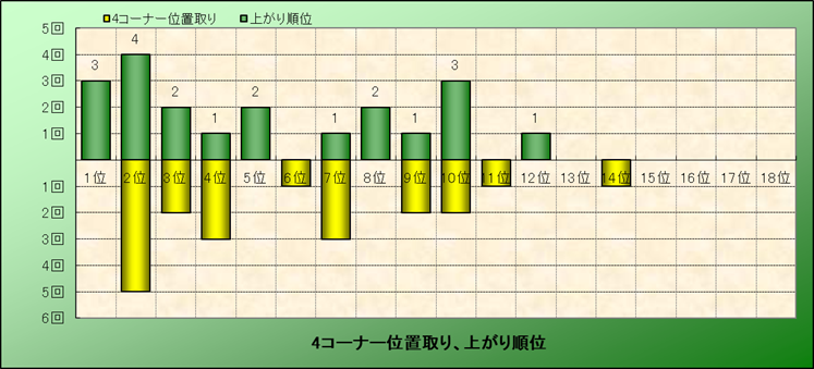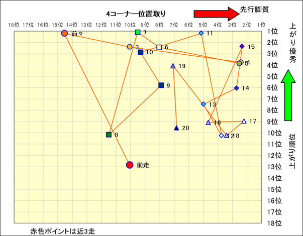 脚質解析 近20レースの4コーナーでの位置取りと上がり順位(頭数補正後) |