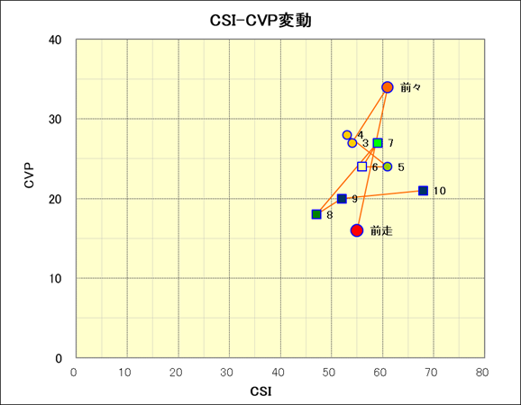 近走における4コーナーでの位置取りと上がり順位(頭数補正後) |
