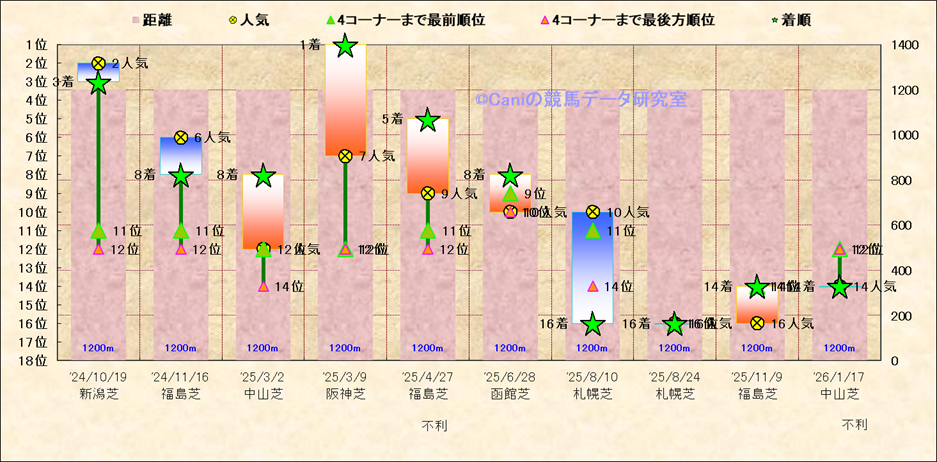 近10走 人気−着順-位置取りの推移 |